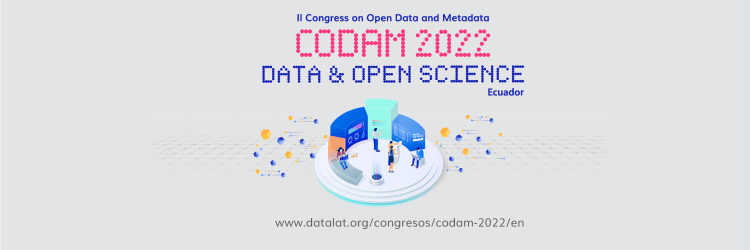 The Second Congress on Open Data and Metadata in Ecuador, Open Research Data Edition, CODAM 2022, is promoted by Datalat Foundation and the Ecuadorian Network of Open Data and Metadata (REDAM). The Congress aims to promote a space for dialogue between the Government, universities, civil society and private companies on the importance of open data and metadata, as well as the recent advances in the matter at the public policy level. Activities will feature panel discussions to identify the relevant issues, roundtable discussions to present current initiatives promoting open science data, workshops to develop a common framework for open science data in Ecuador, and an infographic challenge for early career researchers or recent graduates.